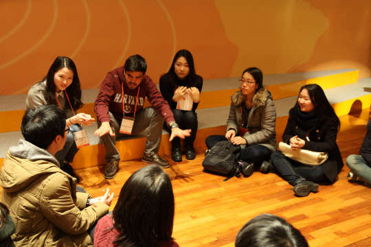 6일 경기 가평군 한화인재경영원에서 열린 하버드 대학생들의 재능기부 행사 '제4회 날개나눔 리더십 콘퍼런스'에 참가한 학생들이 토론을 진행하고 있다. 하버드 대학생들의 재능기부 행사인 날개나눔 리더십 컨퍼런스는 2012년부터 올해까지 4회째 이어지고 있다.