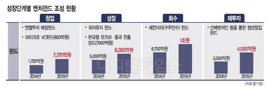 올해 조성되는 벤처펀드는 초기 창업 기업들의 성장 도약 지원에 주로 투입된다. 지난 2013년부터 초기기업 성장을 위해 정부의 벤처투자금이 주로 투입됐다면, 올해는 해외 진출 지원을 통해 기업들이 창업이후 3~7년의 도약기인 '죽음의 계곡'을 건널 수 있도록 돕겠다는 것이다. 동시에 그간 벤처투자 대비 부족했던 엔젤투자를 지원하기 위해 초기 기업에 집중 투자하는 마이크로VC 전용 펀드도 신규 도입된다.