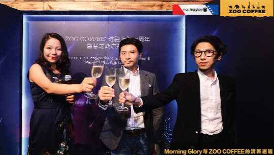 지난 해 중국 상하이에 오픈한 주커피 1개 매장에서는 모닝글로리와 업무 협약을 맺은 후 처음으로 매장 내에 모닝글로리 전용 매대를 선보였다. 당시 오픈식에서는 두 회사간의 협약을 축하하기 위해 주커피의 김건우 회장과 모닝글로리 차이나 한동욱 대표가 참가하였다.