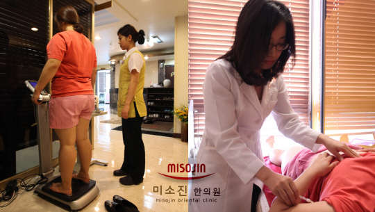 정 원장은 "슬림산과 장청소환 다이어트한약을 복용하여 식욕을 억제하는 것으로 체중증가를 예방하며 한방메조치료, 경피카보테라피, 기계부항, 공기압등을 이용해 지방층 분해를 촉진한다"며 "특히 미소진한의원의 경락마사지는 경락을 자극하여 피를 맑게하여 혈액이 정체되면서 생긴 어혈과 높은 콜레스테롤 수치를 낮춰 고혈압을 개선하는데 큰 도움이 된다"고 말했다.