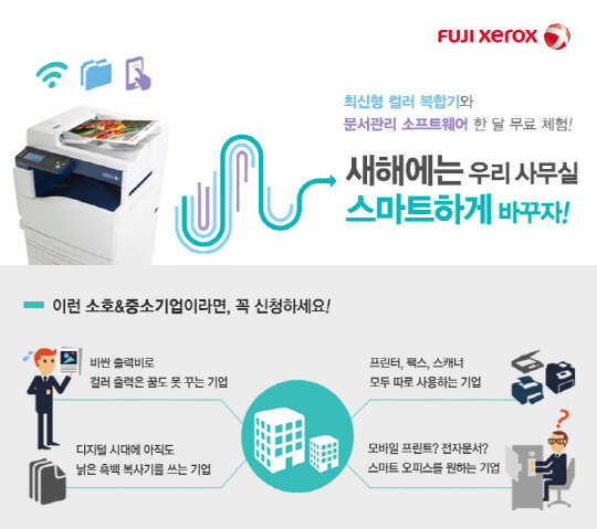 행사 참여를 원하는 중소기업 및 소호족은 한국후지제록스 이벤트 페이지에 접속해 두가지 이벤트 중 참여를 원하는 이벤트의 '신청하기' 버튼을 누르면 된다. 기간은 오는 2월13일까지다.