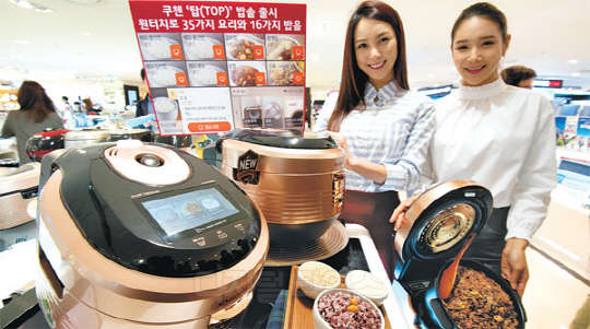 28일 오전 서울 중구 남대문로 롯데백화점 본점에서 모델들이 생활가전 전문 브랜드인 쿠첸의 국내 최초 스마트터치 LCD 밥솥 '탑(TOP)'을 선보이고 있다. '탑(TOP)'은 조작키 없이 스크린을 직접 터치해 밥솥을 작동시킬 수 있는 것이 특징이며 16종류의 취사 메뉴를 지원하고 35가지의 요리가 가능하다.