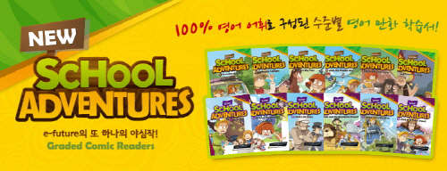 스쿨어드벤쳐를 개발한 이퓨쳐 관계자는 "스쿨어드벤쳐는 영어학습에 거부감을 느낄 수 있는 초등 고학년 대상으로 만화라는 키워드로 재미있게 읽으면서 동시에 영어학습 효과를 키우는 총 3 단계 18권으로 구성된 수준별 영어 만화 학습서(Graded Comic Readers)"라고 말했다.