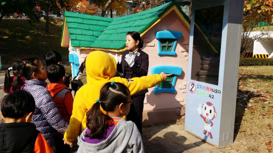 경기도 용인시 처인구 포곡읍 삼성화재교통박물관에서 어린이들이 교통안전체험교육을 받고 있다.