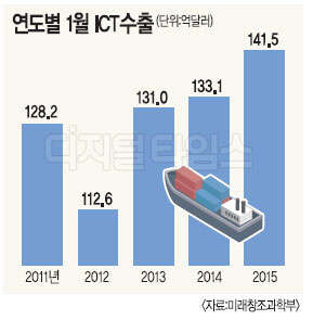 지난달 정보통신기술(ICT) 산업 수출이 중국 기업 급성장, 러시아와 유럽 경제 침체 등 대외 악재에도 1월 기준 최대 실적을 기록하며 전체 수출을 견인한 것으로 나타났다.