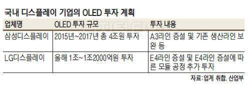 삼성디스플레이와 LG디스플레이가 각각 4조원, 1조원대 OLED 투자 계획을 수립하며 대중화에 본격적인 시동을 걸었다.