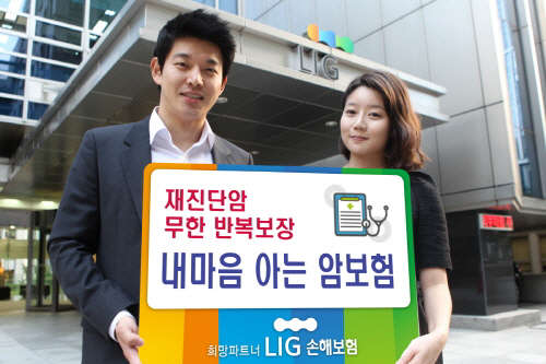 이에 재진단 암 진단비 특약 가입 시 만기(100세)까지 횟수에 제한 없이 암 진단비를 보장해주는 LIG 손해보험(www.lig.co.kr)의 'LIG 내 마음 아는 암 보험'이 주목을 받고 있다.