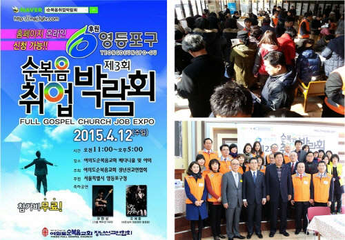 순복음취업박람회는 여의도순복음교회 장년선교연합회(회장 이칠용 장로)에서 개최한다. 지난해 1, 2회의 경우 각 회차당 참여자가 약 2,000여명 기업이 50여개 정도 참여했다. 이는 서울시 한 개 구에서 주관하는 취업박람회 참여기업인 약 20여개 수준을 훨씬 뛰어넘는 대형 프로젝트라는 평가다.