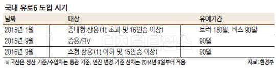 완성차 업체들이 올 1월부터 시작한 디젤차 배기가스 규제인 유로6를 이행하기 위해 골머리를 앓고 있다. 반면 부품·화학업계는 새로운 시장이 열릴 것이라며 반기는 분위기다.