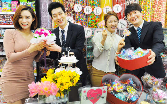 지난 6일 서울 홈플러스 영등포점에서 모델들이 다양한 화이트데이 관련 상품을 선보이고 있다. 홈플러스는 화이트데이를 앞두고 오는 14일까지 전국 140개 매장에서 기프트 팩을 포함한 사탕과 초콜릿 등 200여 종의 화이트데이 행사 상품을 판매한다.