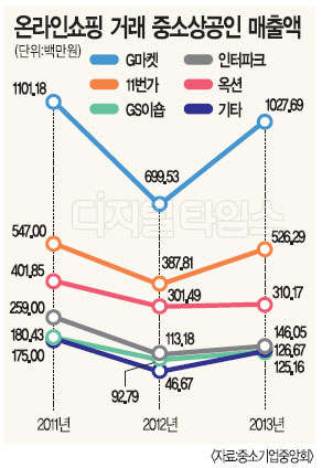 판매자들이 가장 많은 매출을 올린 오픈마켓은 G마켓, 영업이익률이 가장 높은 곳은 인터파크로 조사됐다. 오픈마켓을 통해 거래하는 중소상공인의 최근 3년간 평균 매출액은 5억9000만원으로, 2011년 평균 매출액은 7억원, 2012년에는 4억5000만원, 2013년에는 6억2000만원이었다. 업체별로는 G마켓 판매자의 최근 3년간 평균 매출액이 9억4000만원으로 가장 높아 타 업체의 2배에 가까웠다. 11번가와 거래하는 기업의 평균 매출액은 약 5억원, 옥션 판매자는 3억4000만원의 매출을 올렸다. 인터파크는 1억7000만원, GS이숍은 1억3000만원, 소셜커머스를 포함한 기타 오픈마켓과 거래하는 곳은 1억2000만원으로 나타났다.
