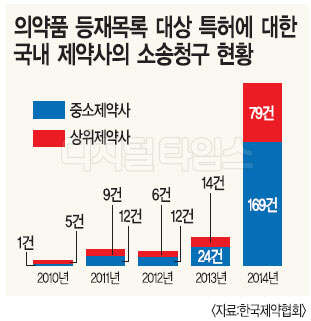 이와 달리 시장선점 기대효과를 노리고 미리 준비를 해온 R&D 중심 중소 제약사들은 오히려 좋은 도약 기회가 될 것이란 기대도 있다. 실제로 허가특허연계제도 시행을 앞둔 지난해 의약품 특허소송 건수는 총 248건으로 2013년 38건에 비해 크게 늘어났는데, 이중 매출 2000억원 이하 중소 제약사의 소송청구 건수는 169건으로 상위 제약사 79건보다 증가 폭이 컸다. 제도 시행 직후 독점권을 노리고 복제약 허가를 신청한 업체도 절반 정도는 중소 제약사인 것으로 알려졌다.
