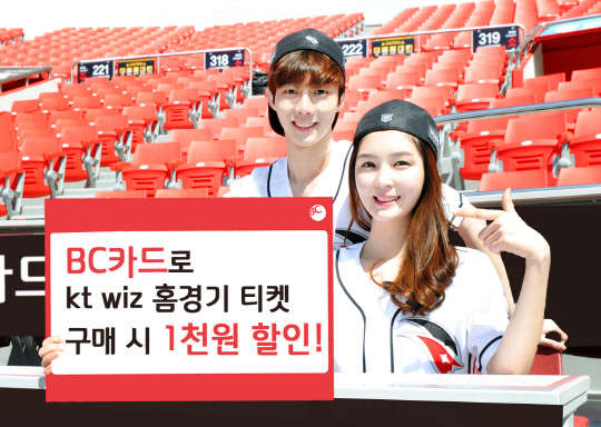 비씨카드는 올해 프로야구 시즌 동안 케이티 위즈(kt wiz) 야구단의 수원 홈구장 티켓 구매 시 1000원 할인 행사를 진행한다고 25일 밝혔다. 이번 할인 혜택은 우리카드, 스탠다드차타드(SC)은행, 하나카드, NH농협카드, IBK기업은행 등 11개 은행·카드사에서 발급된 비씨카드 고객이면 누구나 받을 수 있다. 더불어 비씨카드는 케이티 위즈 수원 홈구장 내 TV, 쇼파, 냉장고 등을 구비한 '스카이박스'를 운영해 고객들이 보다 즐겁게 야구를 즐길 수 있는 기회를 제공할 계획이다.