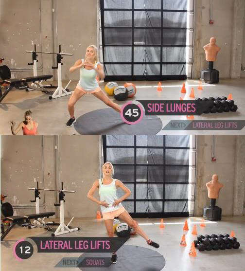 마일리 사이러스 다리운동에는 런지와 스쿼트, 한 쪽 다리 들어올리기, 엎드려서 다리 들어올리기 등으로 구성돼 있다. 이들 운동은 자세에 따라 최소 25회에서 50회를 반복해야 한다.