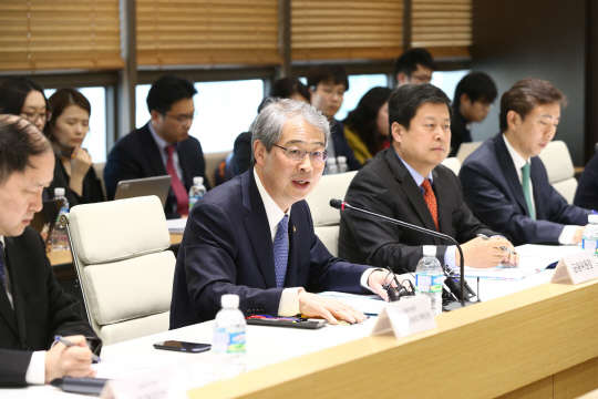 임종룡 금융위원장(앞줄 왼쪽 두번째)이 금융개혁을 위해 비조치의견서 제도와 유권해석 신청서를 적극 활용하기로 했다. 임 위원장은 8일 서울 서초동 비씨카드 본사에서 열린 '금융개혁 현장점검반 간담회'에서 "업계에서는 건의사항이 수용되더라도 법령 등 개정에 장기간이 소요되는 것이 큰 애로사항인 것으로 알고 있다"며 "건의사항이 신속하게 현실화될 수 있도록 비조치의견서와 유권해석을 적극적으로 발급해 나갈 것"이라고 말했다. 또 이날 현장방문에서는 금융개혁 현장점검반의 첫 성과로 현장점검반에 요청된 비조치의견서와 유권해석 회신이 이뤄졌다. 임종룡 금융위원장이 모두발언을 하고 있다.