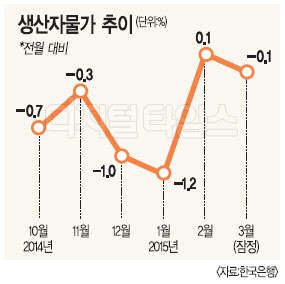 생산자물가는 지난해 7월에 전달보다 0.1% 상승한 이후 지난 1월까지 6개월 연속으로 하락 행진을 지속하다 2월에 설과 유가 반등의 영향으로 0.1% 올랐지만, 다시 내림세로 돌아섰다. 생산자물가는 생산자가 시장에 공급하는 상품과 서비스의 '도매물가'를 뜻한다. 통상 1개월 이후 소비자물가에 반영된다.