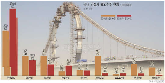 해외건설협회 관계자는 "유가 하락과 IS 때문에 중동에서 발주물량이 크게 줄었지만 중남미와 아시아에서 계약을 따내며 감소분을 만회하고 있다"고 말했다.