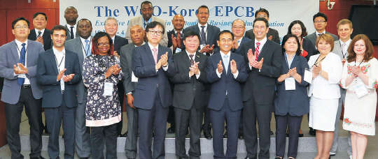김낙회 관세청장이 19일 서울 성북구 국민대학교에서 열린 개도국 관세당국 고위급 대상 '제1회 최고위과정 장학프로그램(EPCBA)' 행사에서 참석자들과 기념촬영을 하고 있다.