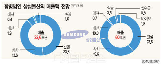 삼성물산은 기존의 초고층·하이테크 건축과 토목·플랜트 분야 등 경쟁력을 갖춘 사업영역에 제일모직의 조경·에너지절감 등을 통합해 국내외 시장에서 시너지를 가시적으로 내놓는다는 계획이다. 목표대로라면 오는 2020년 합병법인의 건설부문 매출액은 23조6000억원으로, 국내 1위는 물론 세계 건설업계 랭킹인 ENR에서도 국내 건설사 중 유일하게 10위권 이내 진입이 가능할 전망이다.