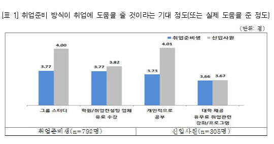 취업사교육을 받는 이유를 묻는 질문에 38.6%는 '가장 효과적인 준비 방법'이라고 답했고 23.8%는 '혼자 할 자신이 없어서'라고 답했다.