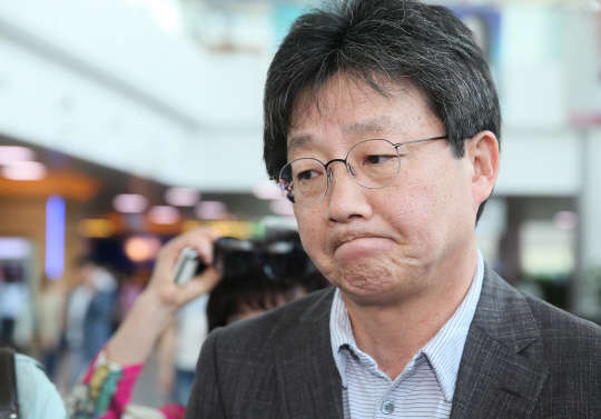 박근혜 대통령이 거부권을 행사한 국회법 개정안이 재의에 부쳐지는 6일이 유승민 새누리당 원내대표의 거취를 둘러싼 '유승민 정국' 분수령이 될 전망이다. 새누리당친박계는 국회법 개정안 논란이 마무리되는 시점을 기해 유 원내대표가 사퇴 의사을 밝혀야 한다는 입장이지만, 비박계는 물러설 이유가 없다며 맞서고 있다. 국회법 개정안은 6일 재의되지만 새누리당 표결 거부로 사실상 자동 폐기가 확실해 보인다. 5일 서울역에서 유 원내대표가 취재진과 인터뷰 중 굳은 표정을 짓고 있다.