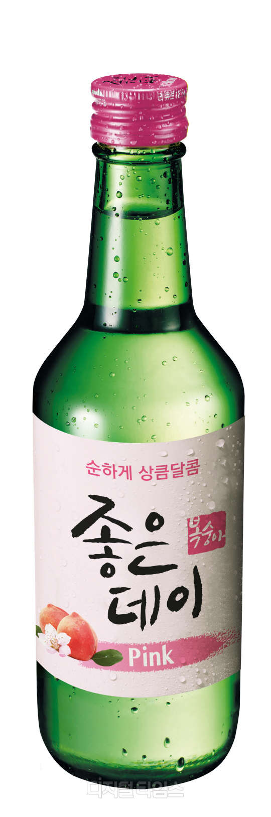 좋은데이 핑크는 대표적인 여름 과일인 복숭아 과즙이 함유된 리류르 소주로, 병뚜껑과 라벨은 분홍색으로 디자인해 과일의 특성을 표현했다.