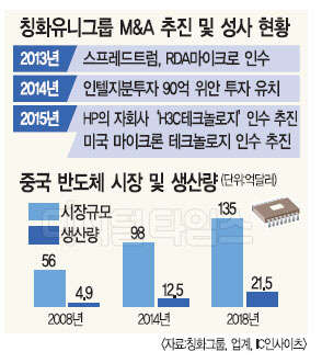 칭화유니그룹, 스프레드트럼 이어 잇단 몸집 불리기 성사땐 한국 주도 메모리시장에 상당한 위협될 듯 삼성전자·SK하이닉스 '인수 추진' 소식에 주가 급락