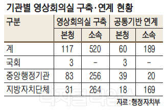 행자부는 이를 위해 2013년부터 '영상회의 공통기반 연계 시스템'을 구축하고 각 기관의 영상회의실을 연결해 원거리 기관 간 영상회의를 활성화하고 있다. 현재 정부부처와 지자체 등 292개 기관에 637개의 영상회의실이 구축되어 있으며, 2014년에는 중앙부처와 시도 및 국회의 80여개가 서로 연결 됐고, 최근 시군구(169개)까지 총 249개의 영상회의실 연결이 완료됐다.