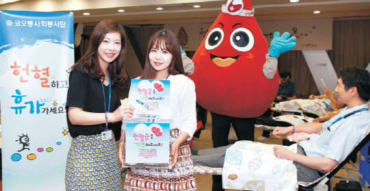 20일 과천 코오롱그룹 본사에서 직원들이 헌혈을 하고 헌혈증을 기부하고 있다. 코오롱그룹은 전국사업장에서 '헌혈하고 휴가가세요' 캠페인을 한 주간 실시한다.