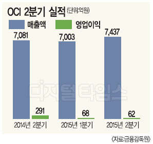 OCI는 연결재무제표 기준 매출액 7437억원, 영업이익 62억원, 당기순이익 215억원의 2분기 실적을 거뒀다고 22일 공시했다.