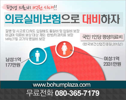 이러한 관점에서 봤을 때, 막대한 의료비용이 지출되는 질병에 대한 안전장치는 필수이다. 지금이라도 의료비 대비방안으로 보험을 준비해야 한다.