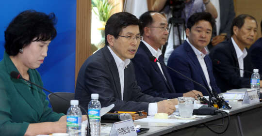 황교안 국무총리(왼쪽 두번째)가 30일 오후 경기도 안산 한국산업단지공단 경기지역본부 회의실에서 열린 제1차 규제개혁점검회의 겸 국가정책조정회의에서 모두 발언을 하고 있다. 이번 회의는 규제에 대한 현장의 애로를 직접 청취하고 즉석에서 개선 대책을 논의하기 위해 열렸다.