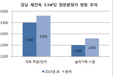 이처럼, 강남 재건축아파트가 봇물처럼 쏟아지지만 일반 분양시장에서는 외면 당할 가능성이 커지고 있다. 강남 재건축아파트의 고분양문제가 도마에 오르고 있기 때문이다. 현재 가락시영아파트(헬리오시티)의 일반분양가가 관리처분 인가 기준으로 3.3㎡당 2510만원으로 책정되었으나 지난 4월 정부의 분양가상한제 폐지 후 인상 될 것이 거의 확정적이다. 3.3㎡당 최하 2650만원 이상에서 2800만원까지 예상하고 있다. 또, 개포주공2단지는 3.3㎡당 4000만원에 육박할 것으로 예상되고 있다.