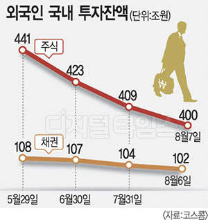 하지만 이미 한국에서 외국인 자본은 빠져나가고 있다. 5월 29일 기준 549조원이던 외국인의 주식·채권 투자잔액은 6월 30일 530조원으로 줄었고, 7월 31일 513조원, 8월 현재 502조원으로 하락 추세다. 한 시장 참가자는 "미국의 9월 기준금리 인상 가능성이 시장에 선반영 된 것으로 분석된다"고 말했다.