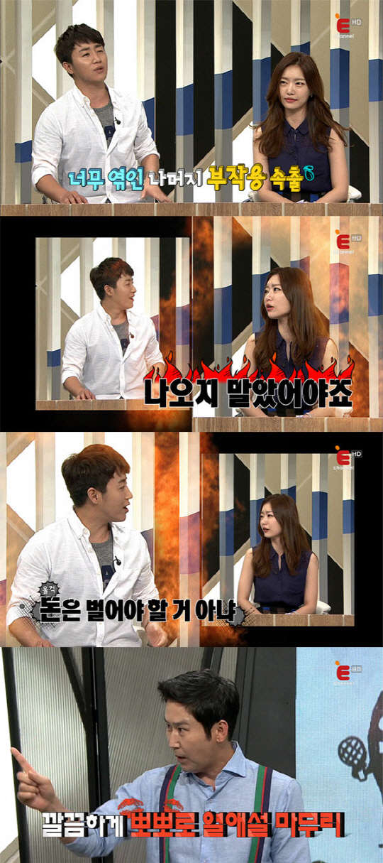이에 홍진호는 "같이 방송을 많이 하다 보니 동반CF도 찍고 프로그램도 하고 좋았는데, 지금은 후회하고 있다"면서 "너무 엮이다 보니 다른 연애를 못 한다"고 잦은 열애설의 부작용을 밝혔다. 옆에 있던 레이디제인이 "그럼 오늘도 나오지 말았어야지"라며 '용감한 기자들' 특별 게스트 섭외에 응한 홍진호를 질타하자 홍진호는 "돈은 벌어야 할 거 아니야"라고 버럭해 웃음을 자아냈다.