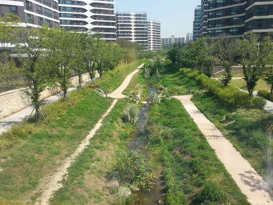 단지 내로 흐르는 총 길이 2.6km의 장다리천, 우시장천은 맑은 물이 흐르는 생태 하천으로 복원되고 이를 따라 자전거도로 및 산책로 등이 조성됐다. 이를 통해 6만㎡의 근린공원, 친수광장, 소공원 및 어린이공원 등이 위치해 자연스럽게 하천과 단지를 연결하는 친환경 단지를 형성했다.