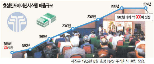 사진은 1985년 8월 효성 NAS 주식회사 설립 모습. 30년간 매출 900배· 직원수 10배 이상 '눈부신 성장' NAS 시대~클라우드 시대까지 최적화 제품으로 승부 스토리지 유통업체 탈피… 새 먹거리 발굴 역량 집중