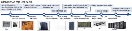◇1990년 RAID 전성시대, 사명 교체로 새 출발= 1980년대 메인프레임 기반의 디스크 스토리지가 대세였다면, 1990년대는 여러 개의 하드디스크를 하나의 가상 디스크로 구성한 레이드(RAID) 기술이 표준 스토리지로 통용되기 시작됐다.