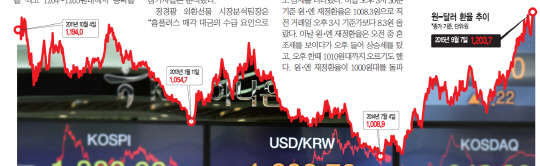 7일 서울 외환시장에서 원·달러 환율 종가는 1203.7원으로 직전 거래일 종가보다 10.3원 올랐다. 원·달러 환율 종가가 1200원대를 기록한 것은 2010년 7월 22일(종가 1204원) 이후 약 5년 2개월 만이다.