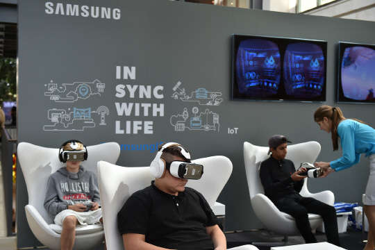 삼성전자는 독일 베를린에서 열리고 있는 IFA 2015에서 가상현실(VR) 체험관을 성황리에 운영하고 있다고 7일 밝혔다. 삼성전자의 IFA 2015 전시관을 가상 체험할 수 있도록 운영 중인 베를린의 대표 쇼핑몰인 불러바드(Boulevard)내 VR 체험관.