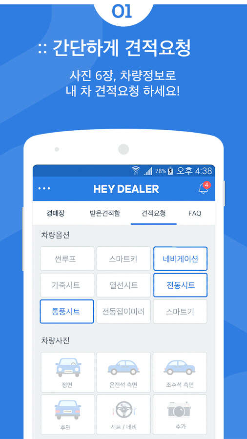 헤이딜러는 개인이 보유한 차량을 중고 매물로 내놓을 때 차량 사진을 5장만 올리면 전국 500여명의 딜러로부터 비교 견적을 받을 수 있는 내차팔기 가격비교 앱이다. 판매자가 안심하고 내 차를 판매할 수 있도록 판매자와 딜러 간의 거래 시 반드시 딜러가 판매자의 요청 주소지로 방문해야 하고 편법을 사용할 경우 딜러에게 강력한 제재를 가한다고 회사는 설명했다.