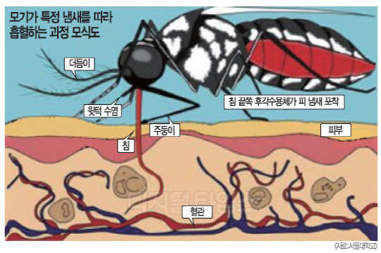 안용준·권형욱 서울대학교 교수팀은 모기가 사람이나 동물의 혈액 냄새를 감지해 신속히 흡혈을 하는 후각행동 메커니즘을 밝혀냈다.