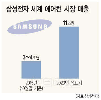 삼성전자가 740억달러(한화 83조6500억원)에 달하는 세계 에어컨 시장 공략을 선언했다. 윤부근 삼성전자 소비자가전(CE) 부문 사장은 "소비자 시장과 B2B 시장을 포함한 에어컨 사업을 5년 안에 100억달러(한화 11조원) 규모로 매출을 키우겠다"는 포부를 드러냈다.