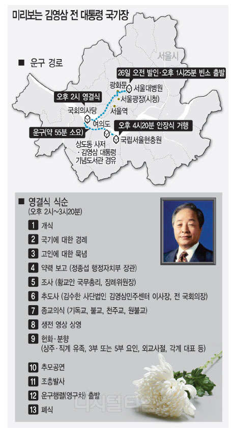 오는 26일 고 김영삼 전 대통령의 국가장 영결식이 고인의 유지인 통합·화합 정신을 살려 경건하고 엄숙하게 치러진다.