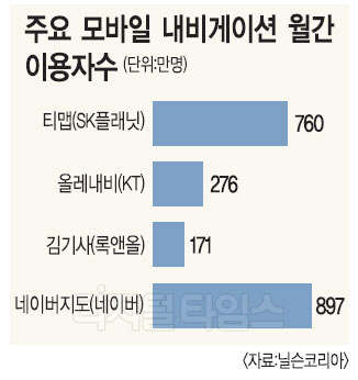 업계 관계자는 "거치형 내비게이션보다 모바일 내비게이션 성능이 훨씬 좋고 간편하다는 인식이 자리잡으면서 모바일 내비 이용자가 많이 늘어나는 추세"라며 "모바일 내비를 바탕으로 여러 서비스를 확장할 수 있기 때문에 업계가 투자와 가입자 유치 경쟁에 나설 것으로 보인다"고 말했다.