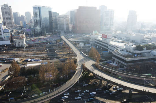 1970년에 개통했던 서울역 고가가 안전 문제로 13일 0시부로 폐쇄됐다. 만리재로와 퇴계로를 운행하는 차량은 이날부터 염천교를 지나는 도로를 이용하거나, 숙대입구 교차로를 통과하는 우회도로를 이용해야 한다. 서울역 고가는 오는 2017년 완공을 예정으로 시민이 이용할 수 있는 공원으로 만들어질 계획이다. 사진은 이날 폐쇄된 서울역 고가 모습.