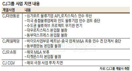 이미 CJ그룹은 2013년 이 회장의 구속 이후 경영 공백의 한계를 여실히 드러내고 있다. 올해 초 APL로지스틱스 인수 실패는 물론, 올해에만 티켓몬스터와 대우로지스틱스, 동부익스프레스, 동부팜한농의 예비입찰에도 참여했지만 본입찰은 포기한 바 있다.