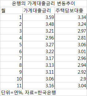 미 금리인상 영향 선반영 된듯… 11월 연3.16% 전달보다 0.1%p 올라 한은 '금융기관 가중평균금리' 통계