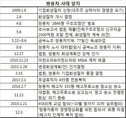 쌍용차는 2004년 중국 상하이자동차를 주인으로 맞았다. 하지만 상하이자동차는 실적 악화로 2009년 법정관리를 신청하고 철수했고, 쌍용차는 전체 인력의 37%에 이르는 2000여명에 대해 구조조정을 통보했다. 노조는 이에 반발해 평택공장을 점거하고 파업에 들어갔다. 1600여명은 희망퇴직으로 퇴사했고 나머지 인원은 정리해고됐다.