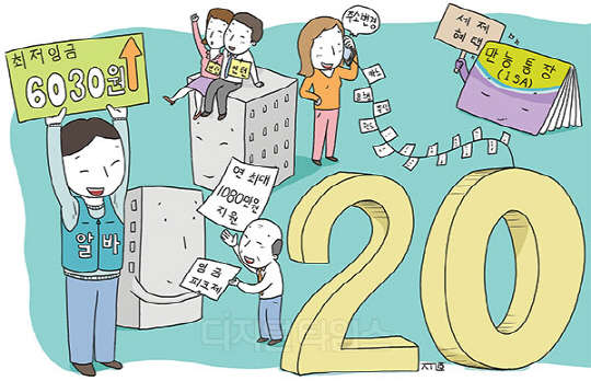 ◇최저임금 6030원으로 인상=내년 최저임금이 시간당 6030원으로 올해보다 8.1% 오른다. 내년 최저임금은 일급으로 환산하면 8시간 기준 4만8240원, 월급으로는 주 40시간 기준으로 126만 270원이다.